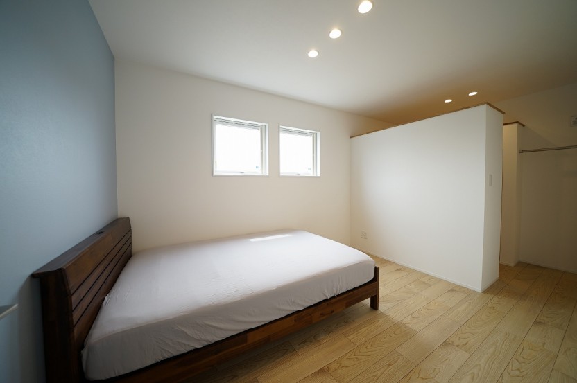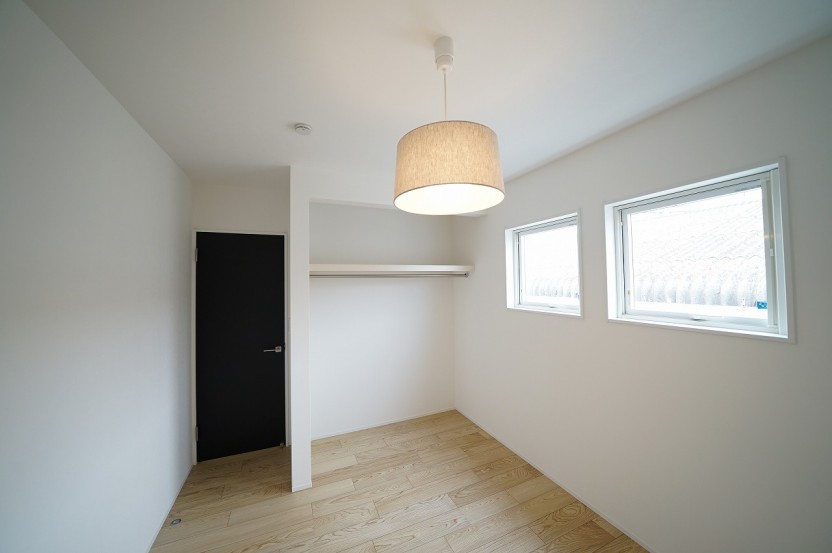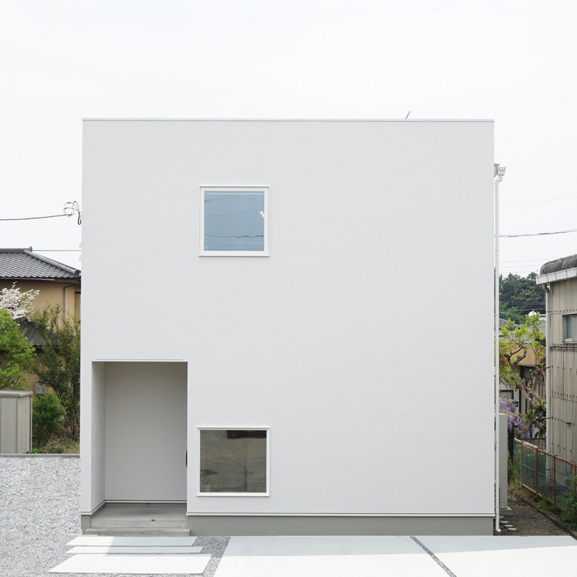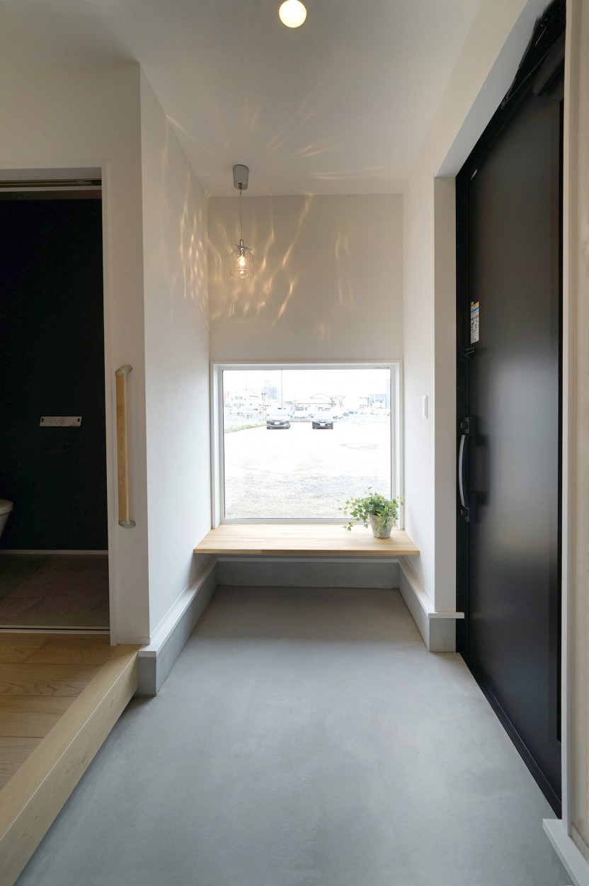 白い塗り壁とデザイン窓で美しい外観にシンプルだけど暖かみのある内観