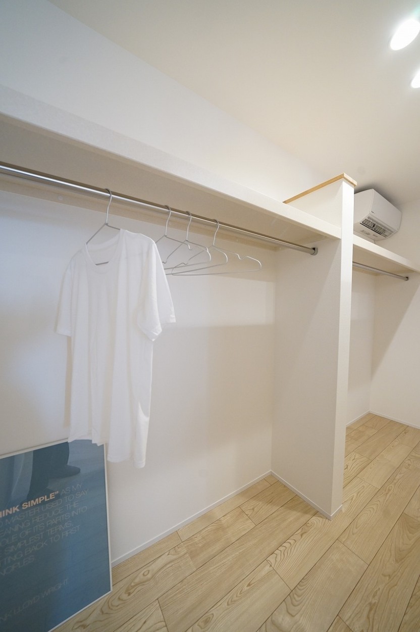 左右から出入りできる大容量のウォーク・イン・クローゼット。スペースの取り方では大きな部屋に出来る可能性も。