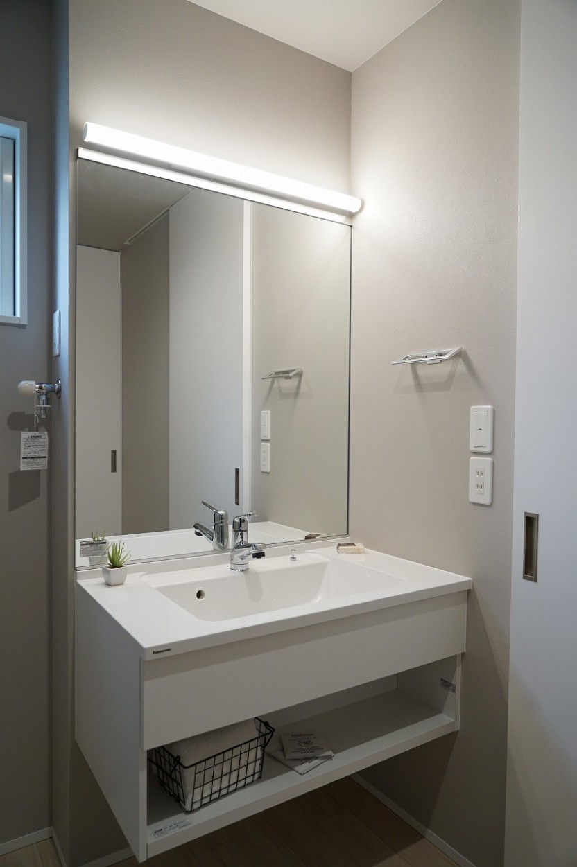 テレビボードを敢えて置かず、移動しやすいようにしました。白い大きな壁面はプロジェクターで映像を写す事で、家族全員が楽しめる映画館にもなります。ベンチとして使えるリビング階段の下は大容量の収納スペース