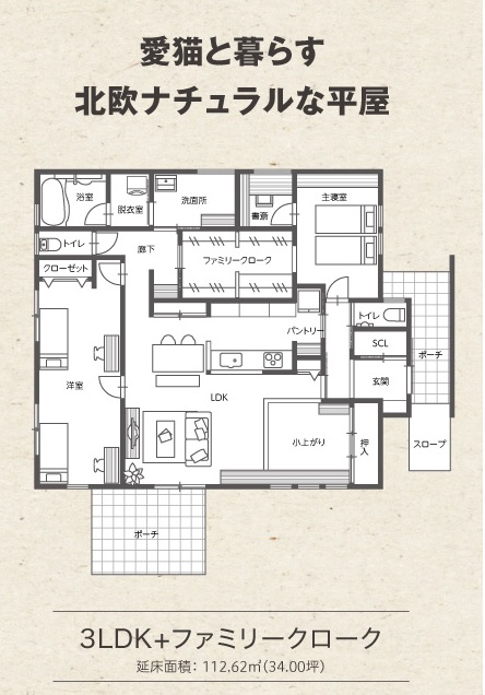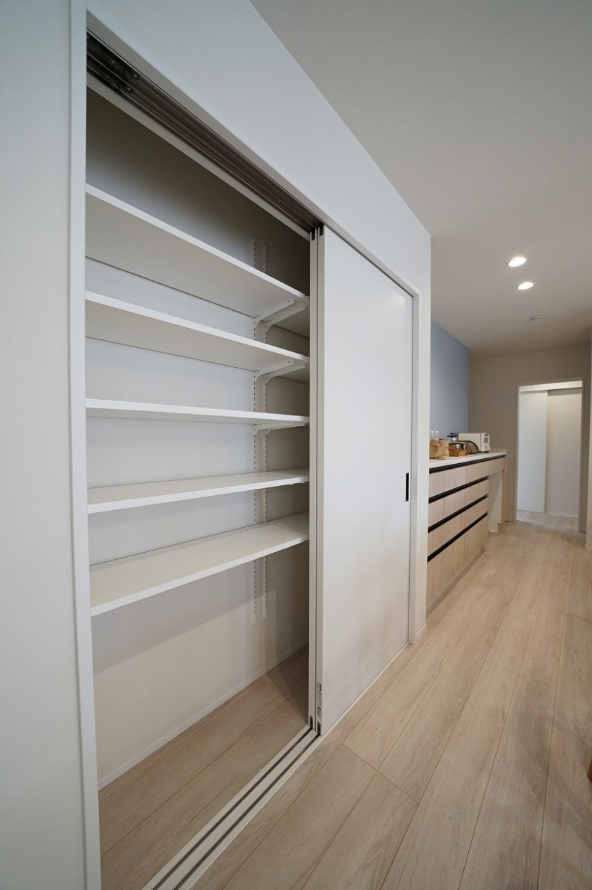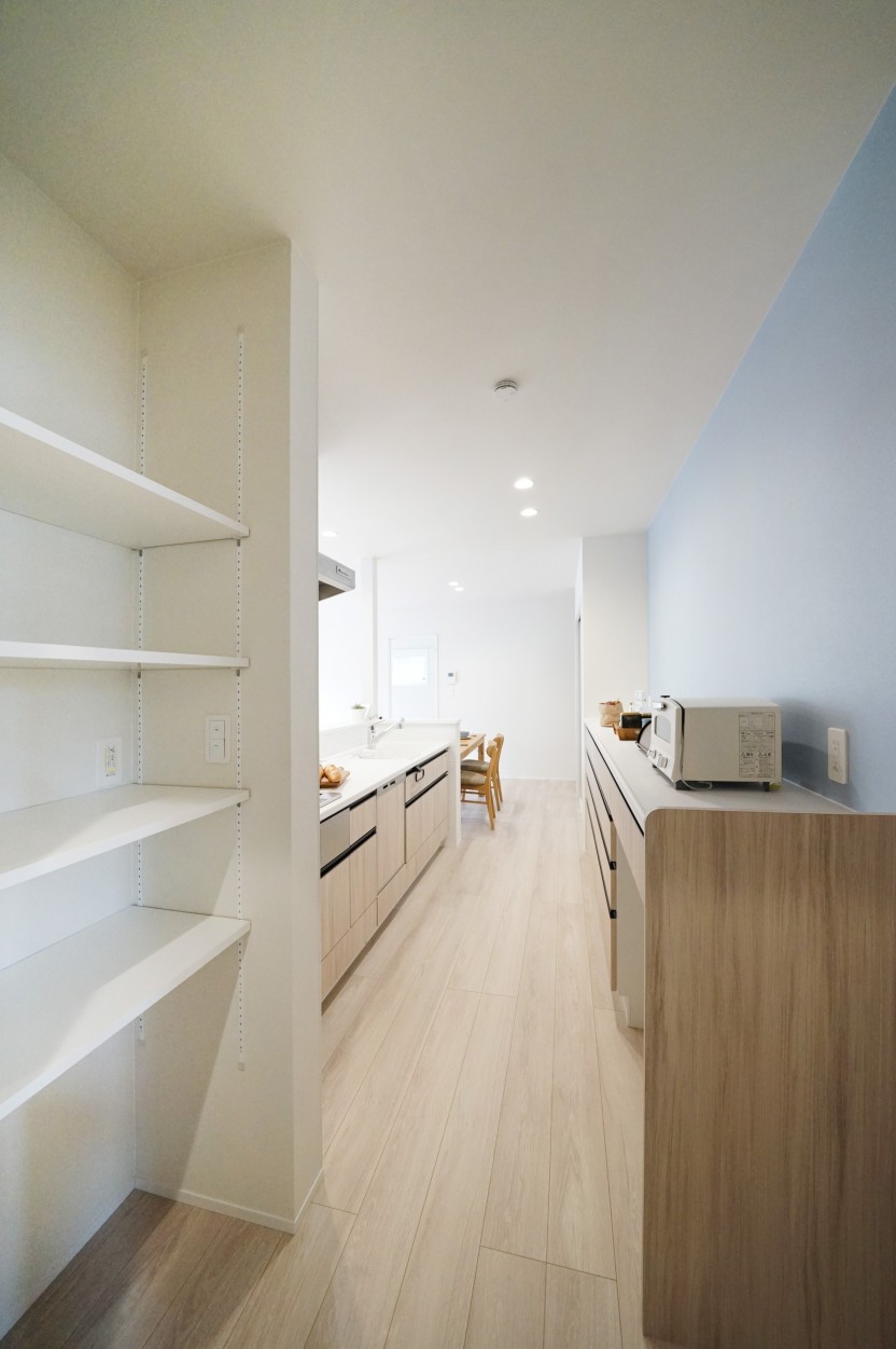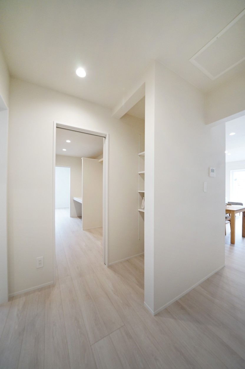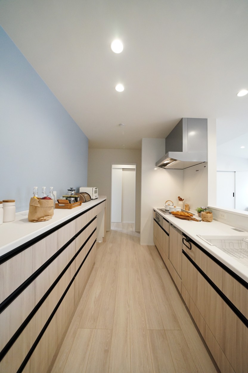 キッチン・ファミリークロークなどを中心の家事楽回遊動線に