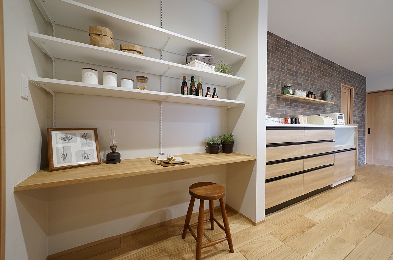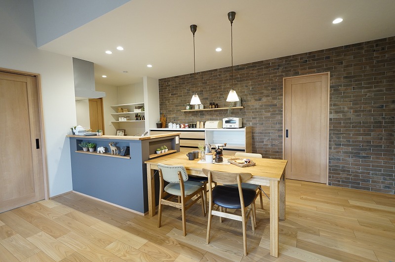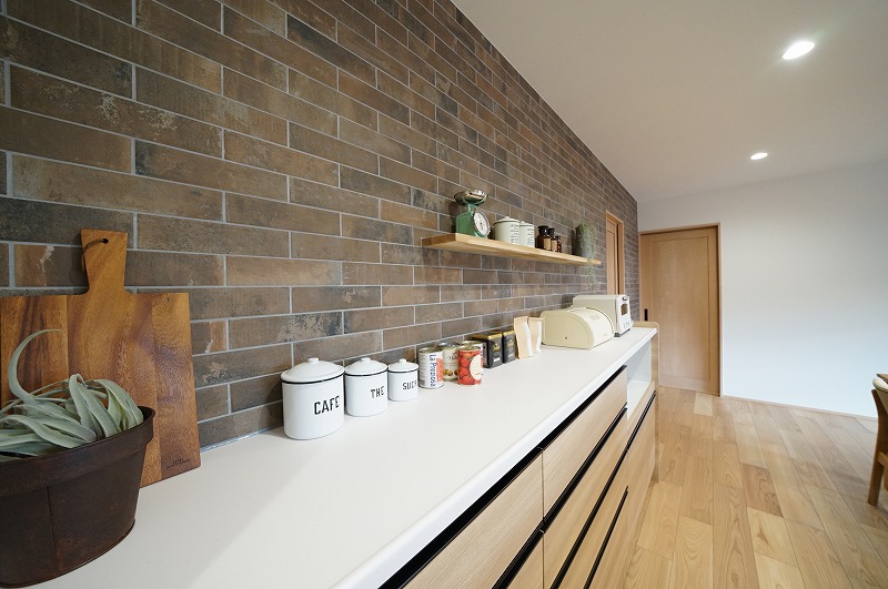 ブリックタイルで大人の雰囲気のキッチンスぺースに